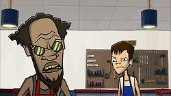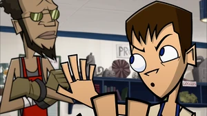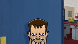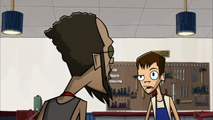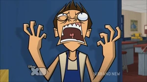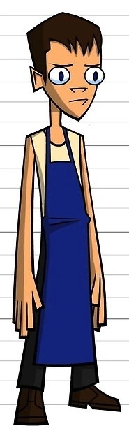 Brent is tall with short brown hair and blue eyes. He wears a white tank top, there are also times he wears a red one, dark gray pants, and brown shoes. When he's in metal shop, he wears a dark blue apron.
