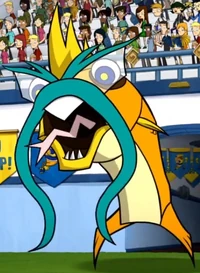 - His Stanked form (in his mascot outfit) resembles a giant carp.