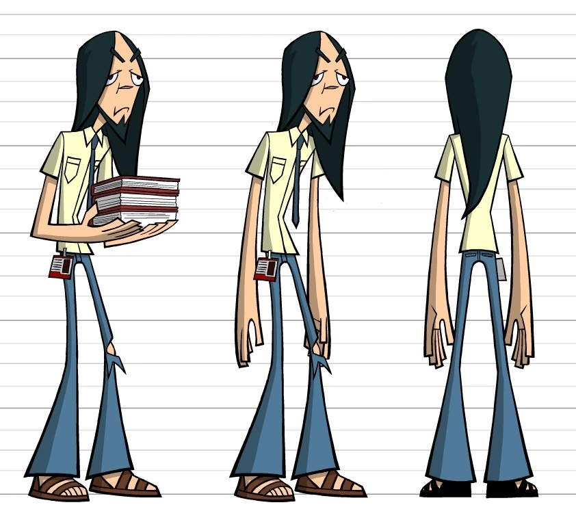 He has a deep, calm voice and very long hair, with a goatee. He takes his job seriously and does not like students breaking rules in the library, and believes he holds authority over anyone who disobeys him. He also appears to have a hippie attitude.