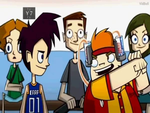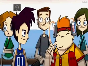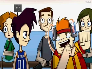 - Brent passes by her in "Sword Quest" while Nameless Blond Boy with White Shirt seems to be explaining something to her and pointing at a tablet.