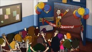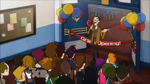 Nameless Girl with Green Hair & Dress is a student who attends Norrisville High.