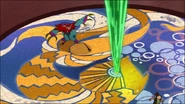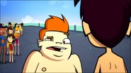 - Her bathing suit in "Flume-Igation" was changed (or she has another suit) that's reverse colors then her previous suit in "House of 1,000 Boogers". The bathing suit was light green with a dark green strip, where he first suit was dark green with a light green strip.