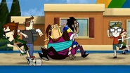 - She is grabbed by Dave while he is stanked during "Stanks Like Teen Spirit". He eventually drops her, and she escapes.