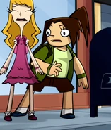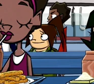 - In "Viva El Nomicon", Randy passes by her while she's standing next to Nameless Girl with Blue Sweater and Nameless Girl with Big Eyelashes in the hallway, giving her a "call me" hand gesture.
