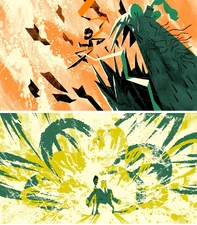 - In the unfinished version of the opening, Randy carried a scabbard for his sword instead of holding it in his scarf. There was also a different title card without the Norisu Nine symbols and animations.
