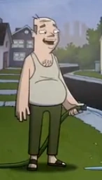 Randy's neighbor is an unnamed adult that lives on the same street as Randy and Rachel. He dresses in only in a gray vest, green pants and green slippers. He is often seen watering his lawn. Randy used to live at the same street with him until he moved next to Howard's house.